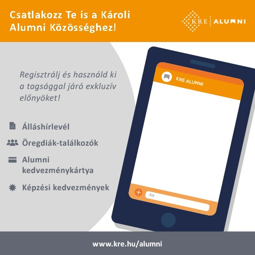 Mindezekről a lehetőségekről a www.kre.hu/alumni oldalon tudsz bővebben tájékozódni.