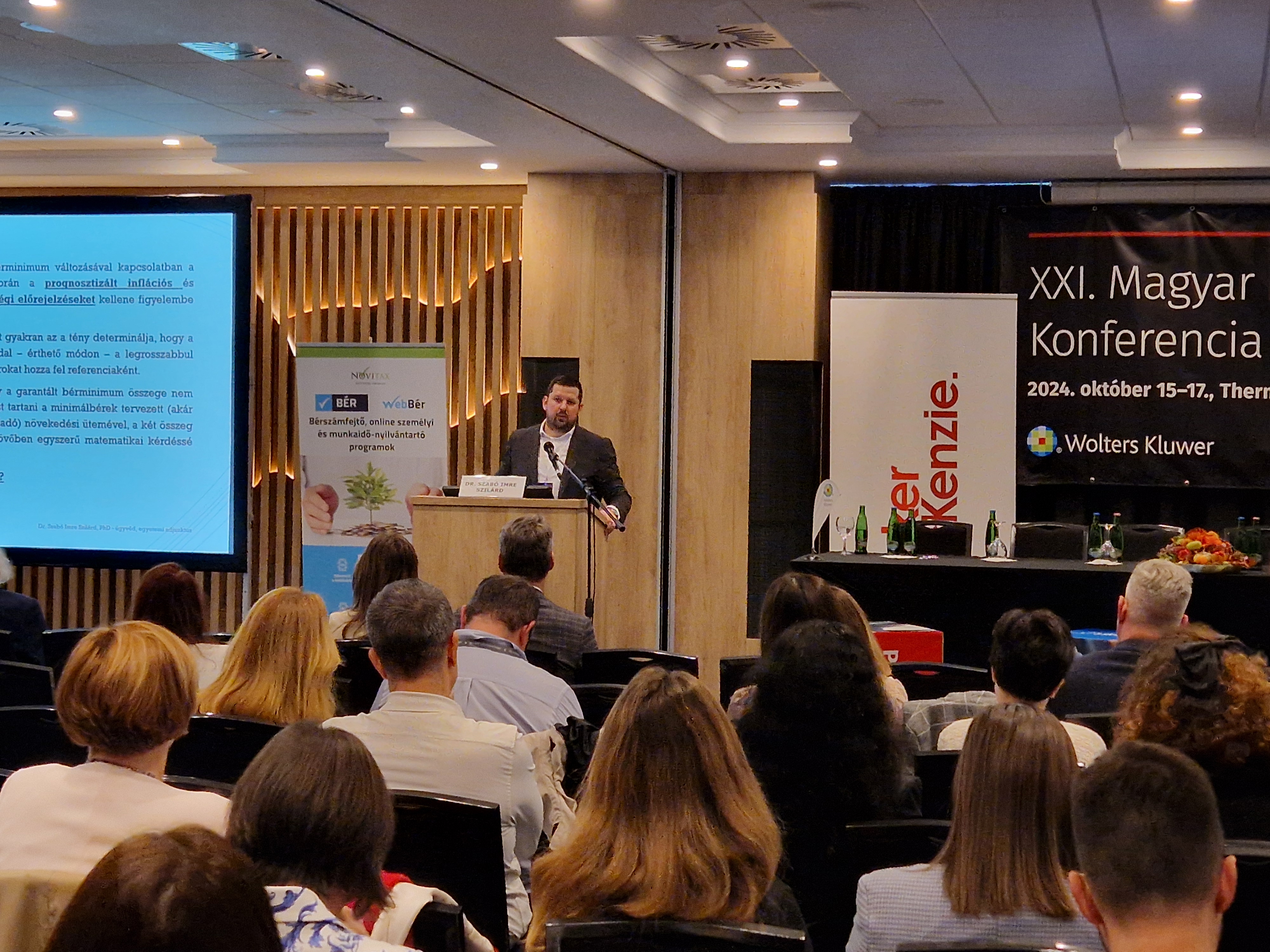 A Wolters Kluwer Hungary 21. alkalommal – telt házzal – rendezte meg a munkajoggal foglalkozók elsőszámú szakmai találkozóját, a Magyar Munkajogi Konferenciát 2024. október 15-17. között Visegrádon. Az eseményen több mint 300 jogász, kutató, egyetemi oktató és HR szakember vett részt. Karunk címzetes egyetemi docense, dr. Pál Lajos ügyvéd, a konferencia szakmai házigazdája kiemelte, hogy Magyarország húsz éve csatlakozott az Európai Unióhoz. Ezért amint a csatlakozás évében, úgy idén is számos előadást szentelnek a szervezők annak vizsgálatára, hogy milyen hatással van az uniós jog a hazai munkajogi jogalkotásra, gyakorlatra.